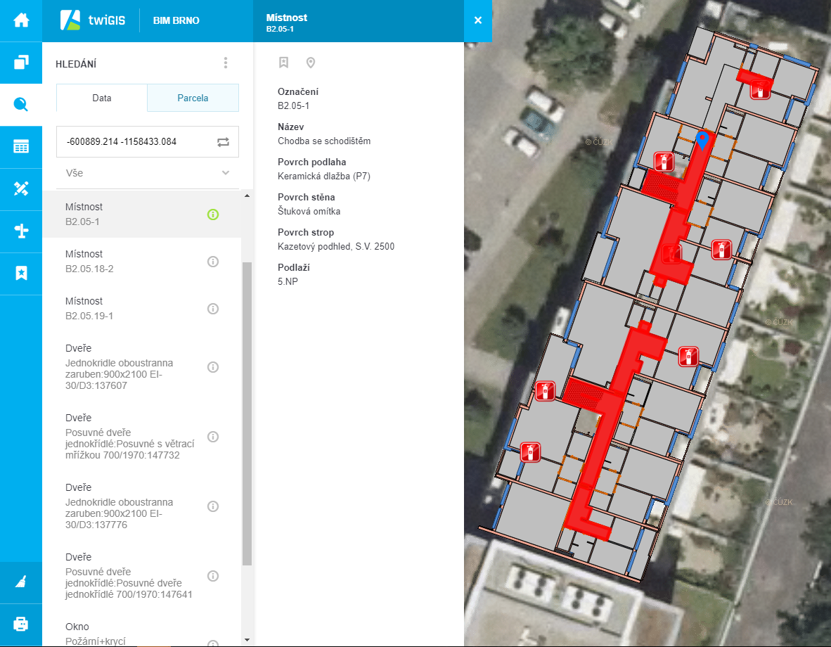 Výsledek migrace v mobilní mapové aplikaci twiGIS